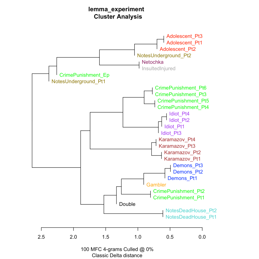 Stylometry is a method we’re going to use to consider narrative voice in Dostoevsky, but the initial findings of our week in Montreal are promising and we’re excited to see what else we can uncover as we begin our stylometric adventure. We plan to present our paper on using stylometry to analyze Dostoevsky’s narrative voices at the ASEEES conference in November.